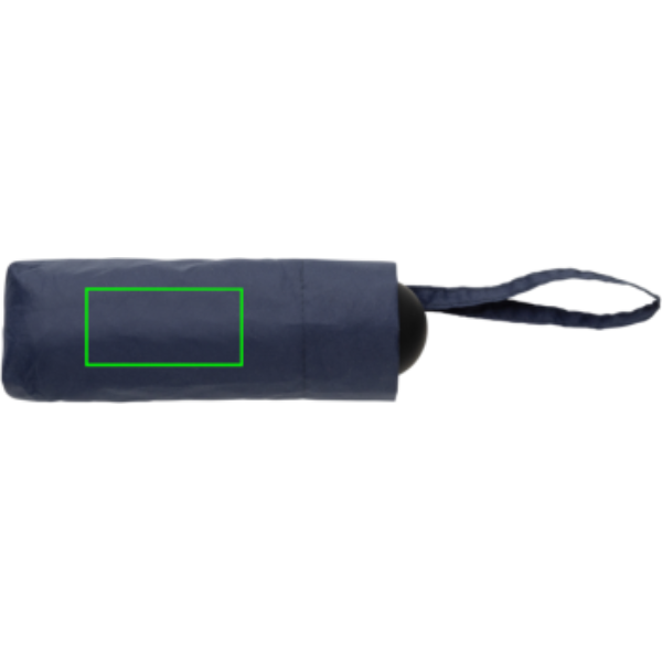 Deze Aware™ RPET super mini handmatige paraplu heeft vijf secties, waardoor hij ultracompact kan worden terwijl hij toch volledige dekking biedt. Dankzij het slanke formaat past hij gemakkelijk in de meeste tassen of broekzakken. Gemaakt van 100% rPET 190T pongee met AWARE™ tracer, wat het echte gebruik van gerecyclede materialen garandeert. De stalen schacht en het frame, gecombineerd met 8 glasvezelribben in een tweesectieontwerp, zorgen voor duurzaamheid en windbestendigheid. De paraplu heeft een handmatig open- en sluitsysteem en een PP-handvat met een PU-coating voor een comfortabele grip. Hij is voorzien van een digitaal productpaspoort, is PVC-vrij en wordt individueel verpakt in een polybag.