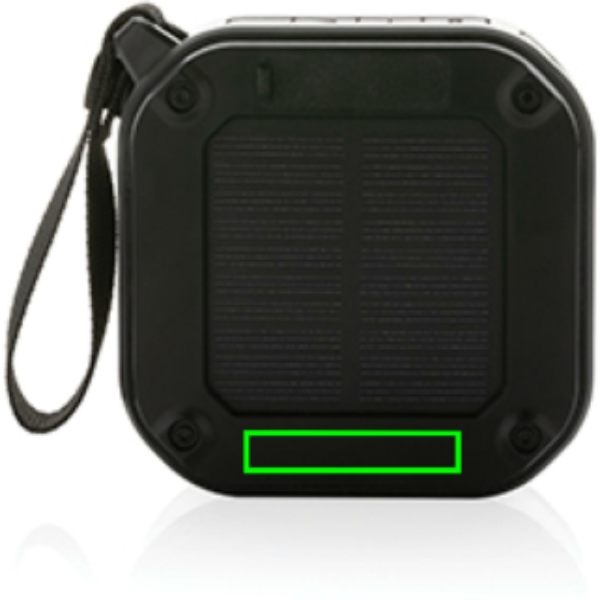 Krachtige 3W draadloze luidspreker met geïntegreerd zonnepaneel aan de achterkant gemaakt van RCS-gecertificeerd gerecycled ABS. Totaal gerecycled materiaal: 38% op basis van totaalgewicht. RCS-certificering garandeert een volledig gecertificeerde toeleveringsketen van de gerecyclede materialen. De luidspreker gebruikt hoogwaardige monokristallijne zonnepanelen met een conversierendement van 19%. Laadsnelheid is afhankelijk van de omstandigheden. Laadsnelheid solar 5V/80mA. De luidspreker is uitgerust met een 400 mAh batterij voor maximaal 4 uur speeltijd en BT5.3 voor een soepele verbinding en helder geluid. Verbindingsbereik tot 10 meter. Met microfoon en pick-up functie om oproepen te beantwoorden. Met geïntegreerde 30 lumen LED-licht. Verpakt in een FSC® mix doos. Inclusief RCS-gecertificeerde gerecyclede TPE-oplaadkabel. Item en accessoires zijn 100% PVC-vrij. IPX 5 waterdicht.
