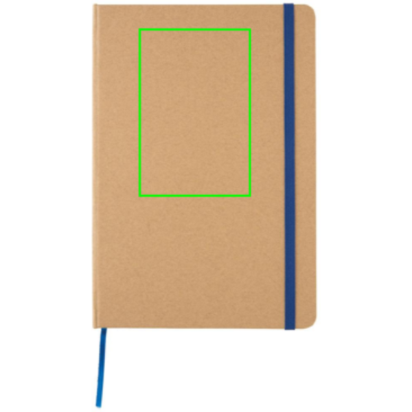 Kraft notitieboek A5. 72 vellen/144 pagina's van 70g/m2. Crèmekleurig papier. Met elastische band en bladwijzerlint.