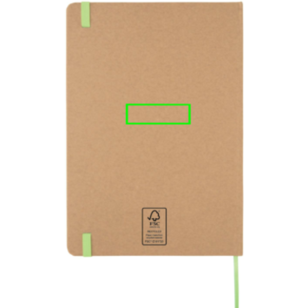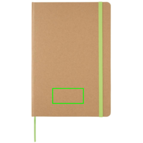 Kraft notitieboek A5. 72 vellen/144 pagina's van 70g/m2. Crèmekleurig papier. Met elastische band en bladwijzerlint.