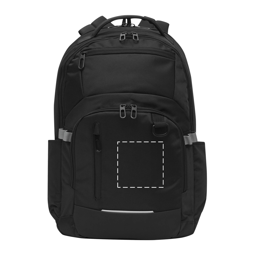 Rugtas AARHUS: 1 voorvak met ritssluiting en organizer, 1 voorvak met verticale rits, 1 voorvak met horizontale ritssluiting met fluwelen voering (ideaal voor smartphones, etc.). reflecterende strepen, 2 zijvakken, 2 hoofdcompartimenten met ritssluiting, een met gefoamd binnenvak voor laptop of tablet en extra zak, gefoamd handvat, met ring- en penlussen, 1 ophanglus, ergonomisch gevormde gefoamde schouderriemen en gefoamd rugpand, riem als reporterfunctie op de rug - een product van het merk NORDIC PLAINS.