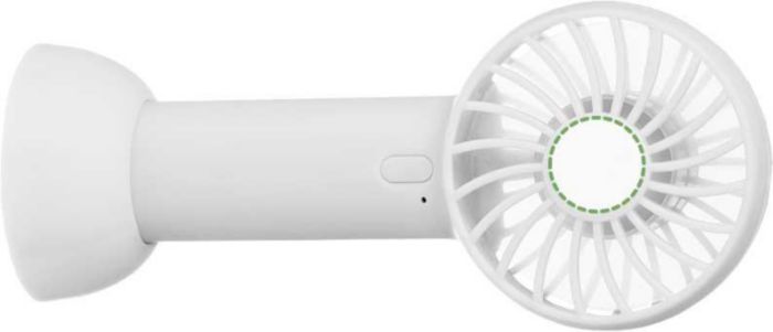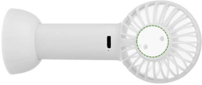 ABS elektrische handventilator met een 600 mAh-batterij en een Type-C oplaadpoort, inclusief oplaadkabel, waardoor de ventilator eenvoudig oplaadbaar is. Voorzien van een standaard voor rechtopstaand gebruik en geschikt voor afzonderlijk gebruik tijdens het reizen. De ventilator heeft drie snelheidsstanden. Per stuk verpakt in een bruine kartonnen doos.