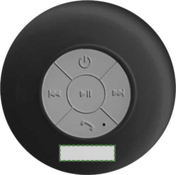 Kunststof speaker (2 watt) met draadloze verbindingstechnologie, spatwaterbestendig. Bel handsfree of luister naar muziek met deze speaker. Met zuignap voor gladde oppervlaktes. Op te laden via USB kabel.