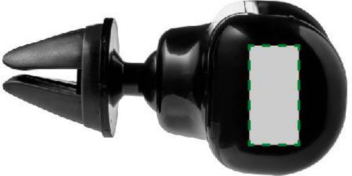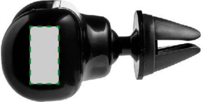 ABS mobiele telefoonhouder met PVC accenten, voor gebruik in de auto. De houder bevestigt aan het ventilatierooster en kan 360 graden roteren. De zijkanten zijn uittrekbaar om verschillende telefoons te passen.