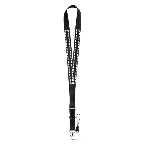 Polyester lanyard met metalen karabijnhaak, afneembare gesp en riem voor mobiele telefoon. 20 x 530 mm