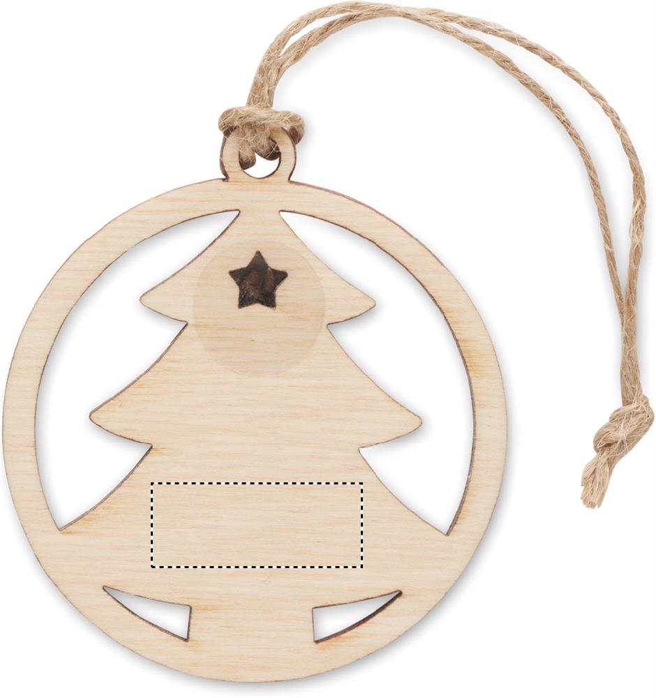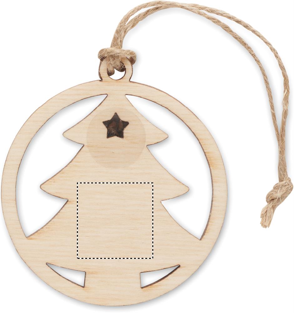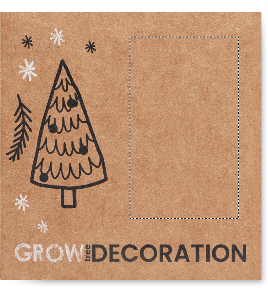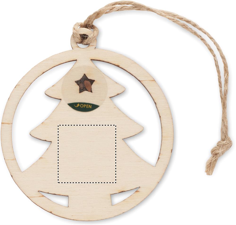 Houten boomvormige decoratiehanger met jute koord inclusief sparrenzaadjes. Gepresenteerd in gedecoreerde kraft envelop. Gemaakt in de EU.