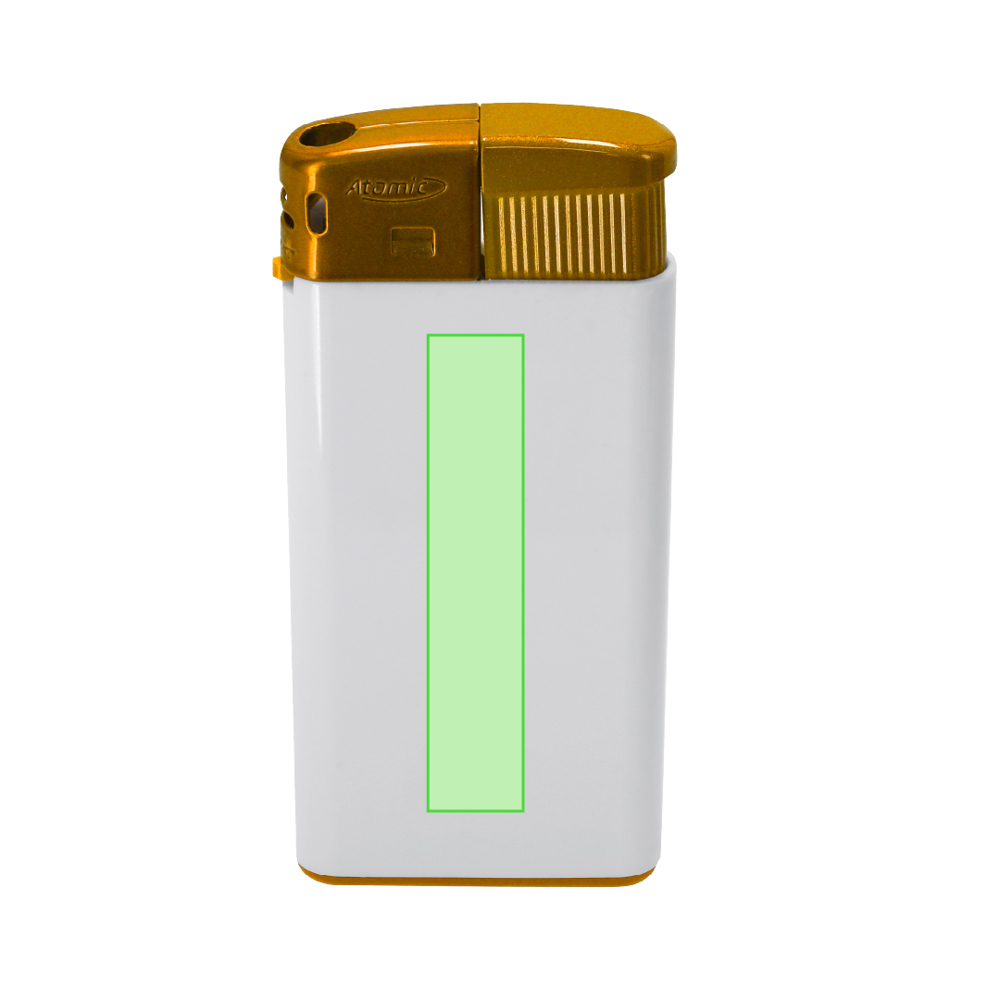 Gasaansteker met elektrisch ontstekingsmechanisme, vervaardigd uit ABS. Voorzien van kinderbeveiliging, navulbaar en met vlamregelaar. Verkrijgbaar in een breed scala aan effen kleuren, met glanzend witte behuizing. Geleverd in dozen van 25 stuks in 5 kleuren.