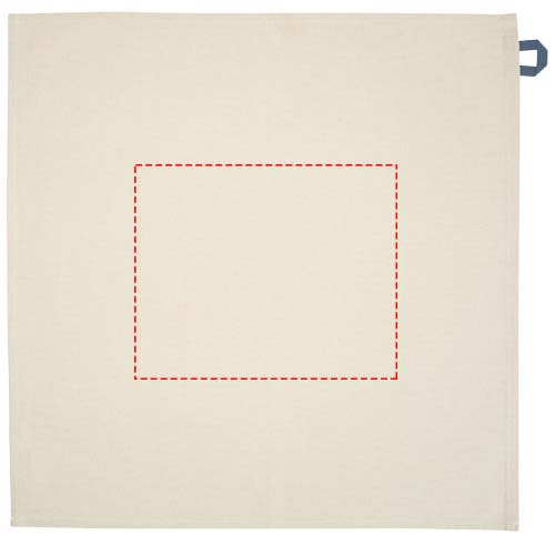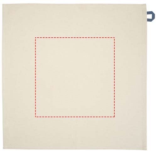 Keukenhanddoek van 100% GRS gecertificeerd gerecycled katoen van 200 g/m² , met een opvallende contrasterende lus. Handdoekformaat: 50 x 50 cm.