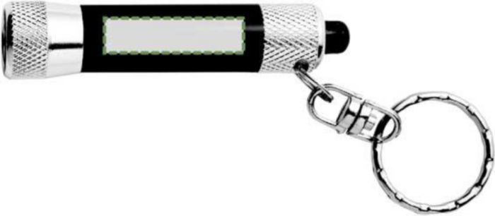 Metalen sleutelhanger met LED lampje, incl. batterijen.