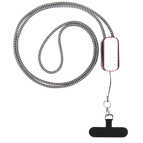 Blijf onderweg opgeladen en verbonden met de Anser smartphone-lanyard. Gemaakt van gerecyclede materialen, inclusief een ingebouwde 27 W 5-in-1-oplaadkabel met USB-A- en Type-C-ingang en Type-C- en Lightning-uitgang. Een doorzichtig inzetstuk houdt je telefoon op zijn plek in de hoes, zodat je je telefoon handsfree kunt gebruiken en snel kunt opladen met één handig accessoire.