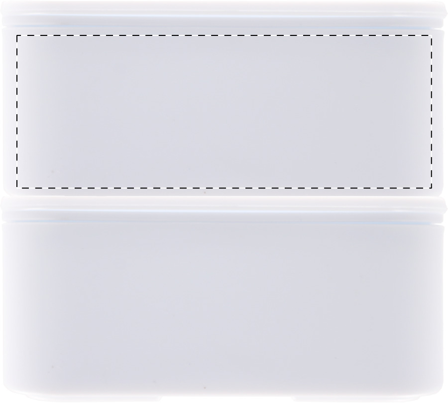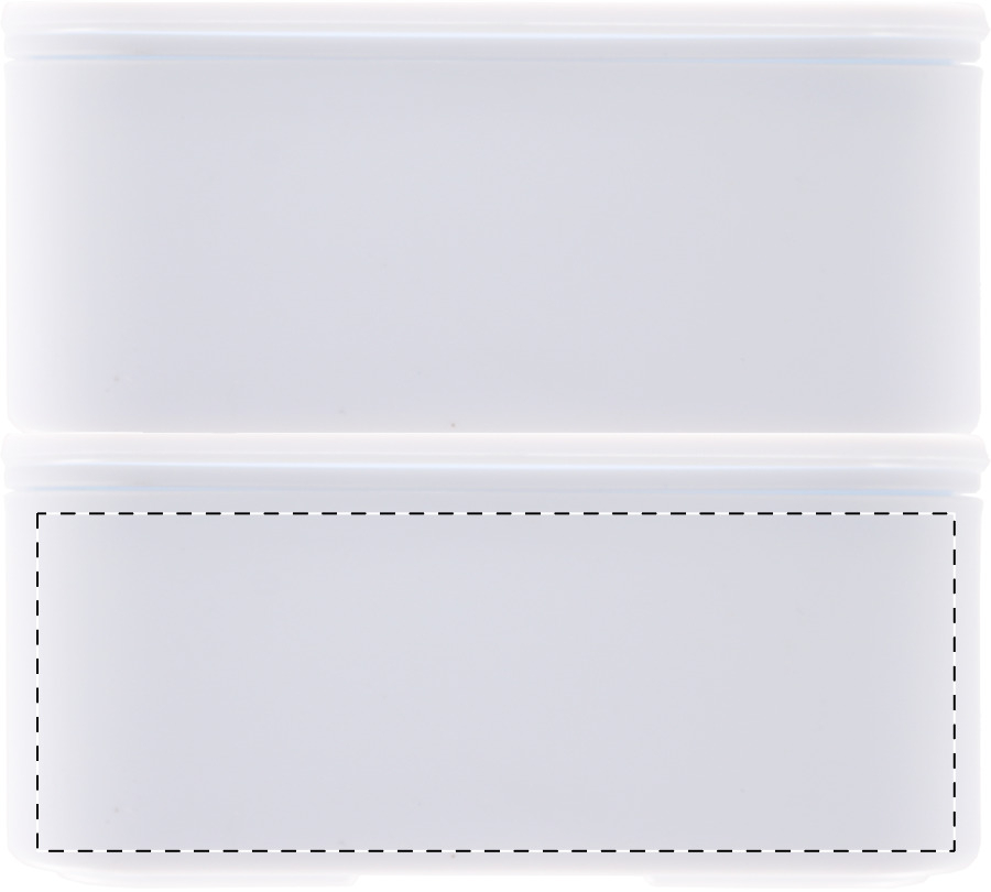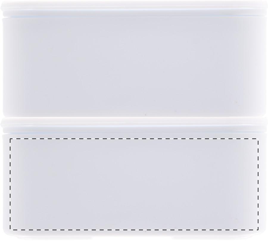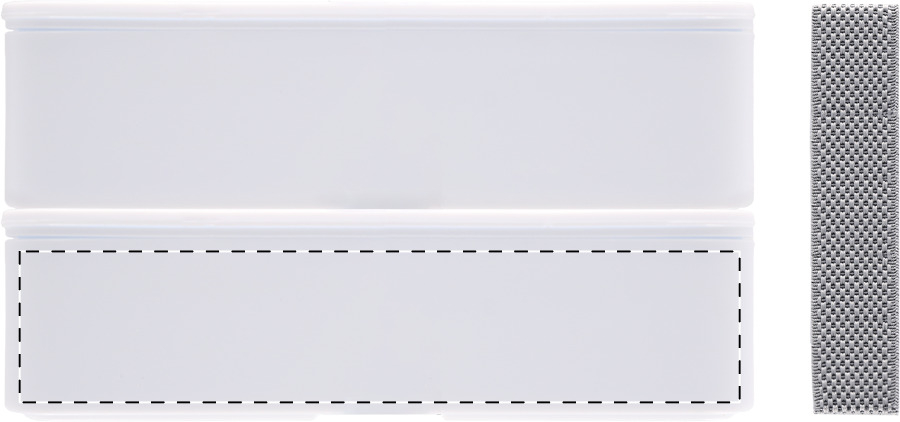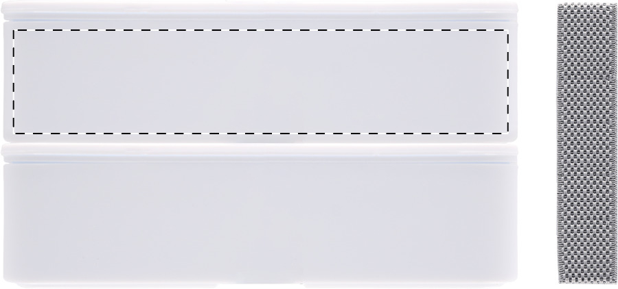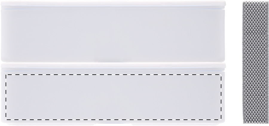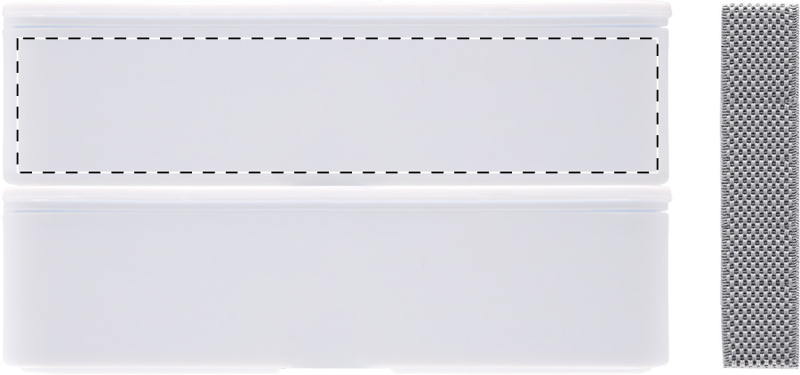 Broodtrommel van antibacterieel plastic met bestekset (vork, lepel en mes) en elastische band. Met 2 compartimenten van elk 700 ml. Voldoet aan ISO 22196.
