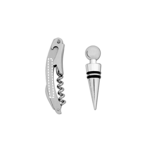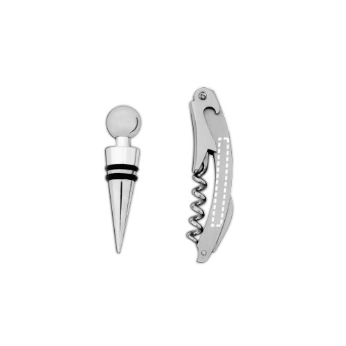 Zinken en vroestvrij staal wijnset. Inclusief kurkentrekker met sommeliermes en stop. Geleverd in geschenkverpakking. 103 x 133 x 28 mm