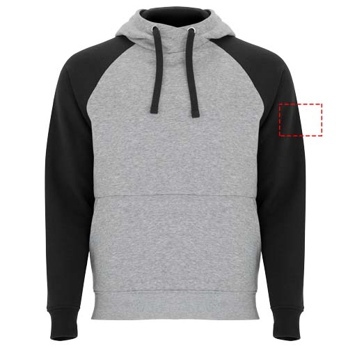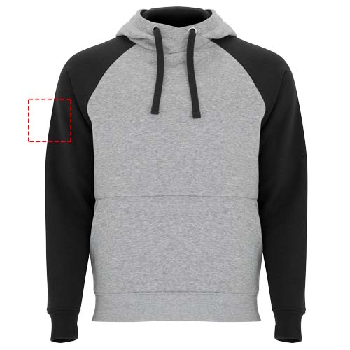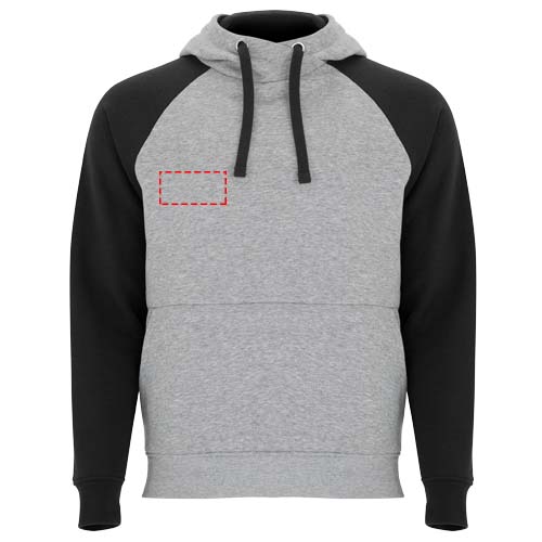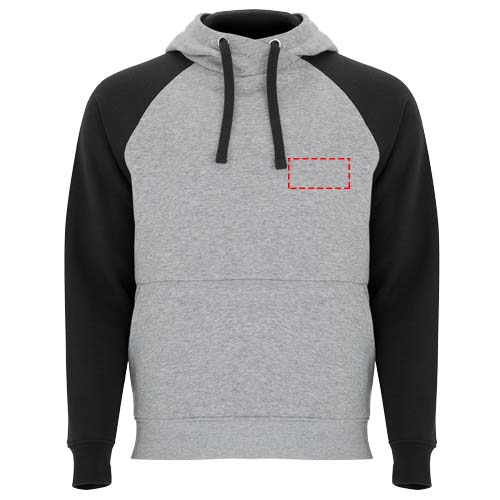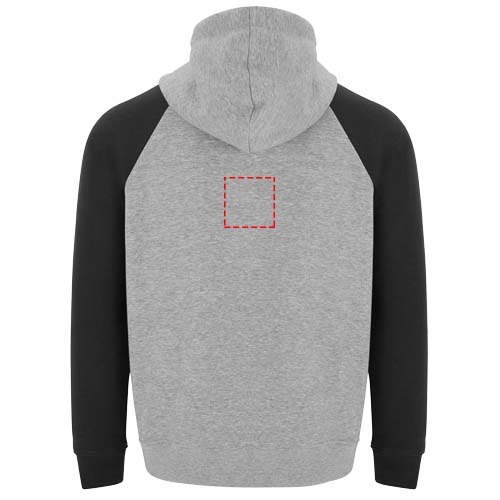 Tweekleurige unisex hoodie. Capuchon met gekruiste hals en metalen oogjes. Contrasterende binnenkant van de capuchon, trekkoord en raglanmouwen. Kangoeroezak. Manchetten en zoom van 1x1 ribgebreid elastaan. Verwijderbaar label.