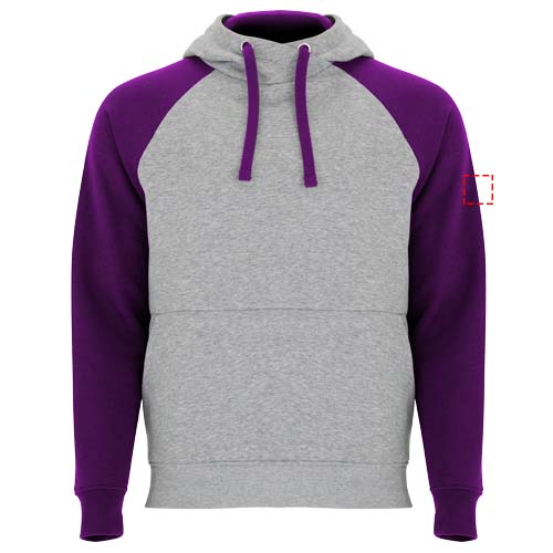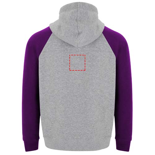 Tweekleurige unisex hoodie. Capuchon met gekruiste hals en metalen oogjes. Contrasterende binnenkant van de capuchon, trekkoord en raglanmouwen. Kangoeroezak. Manchetten en zoom van 1x1 ribgebreid elastaan. Verwijderbaar label.