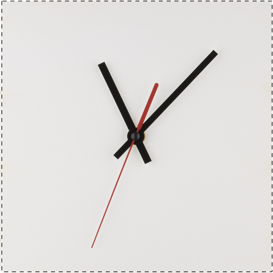 Custom made vierkante HDF houten muur klok inclusief UV-LED bedrukking. Werkt op 1 AA batterij, niet meegeleverd. MOQ: 50 stuks.