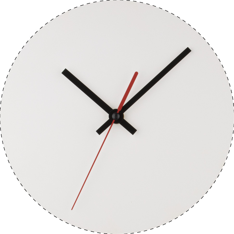 Custom made ronde HDF houten muur klok inclusief UV-LED bedrukking. Werkt op 1 AA batterij, niet meegeleverd. MOQ: 50 stuks.
