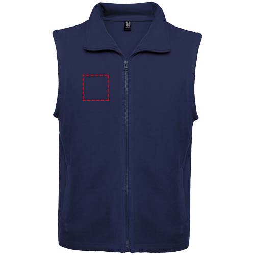 Fleecevest met polokraag en bijpassende rits. Zijzakken met bijpassende rits. Verwijderbaar etiket. Het model is 185 cm en draagt maat M.