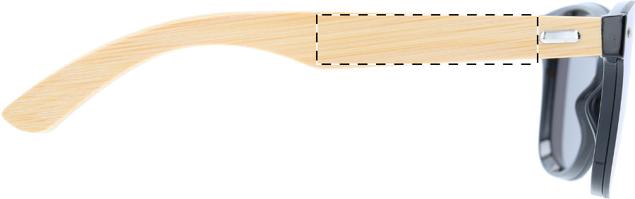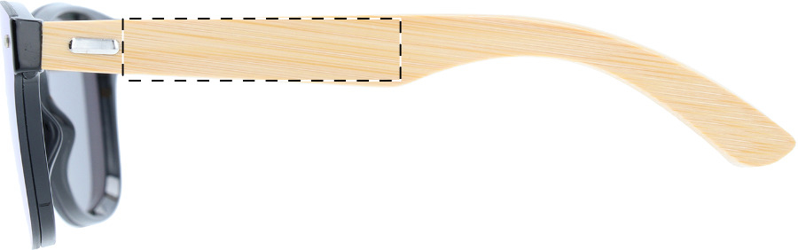 Zonnebril met geheel gespiegelde lens uit één stuk en bamboetempels. Met UV 400 bescherming.