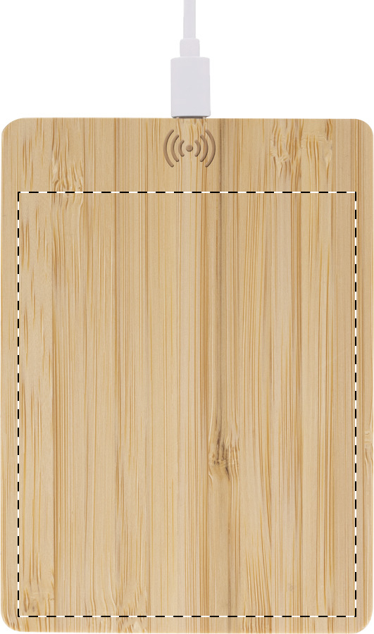 Draadloze snellader (10W) in palletvormige bamboe behuizing. Inclusief USB-oplaadkabel.
