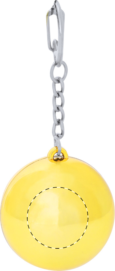 Ronde, vanille lippenbalsem in metallic kleur houder met metalen sleutelhanger. Met SPF15-bescherming.