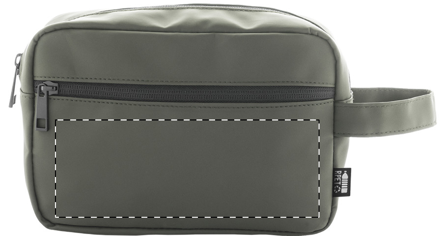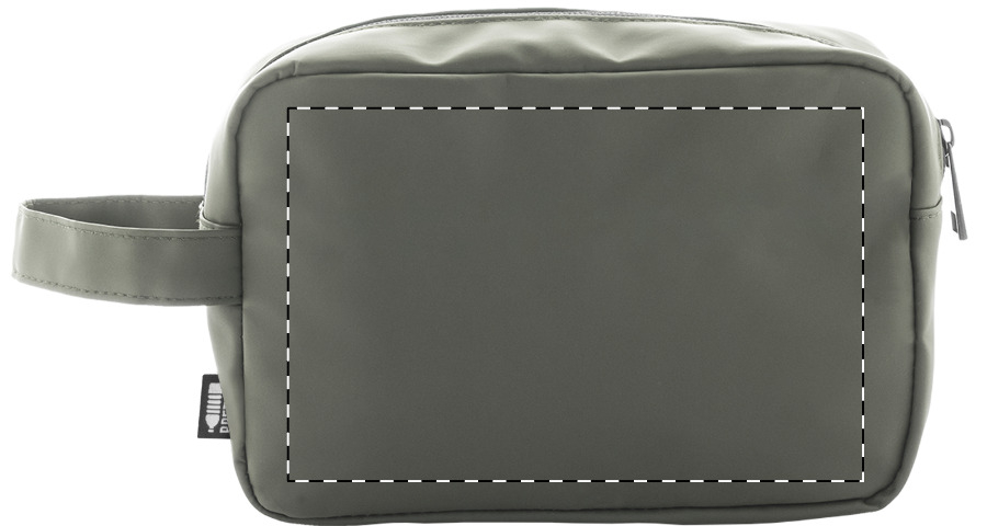Zachte make-uptas van gerecycled PU-leer met twee compartimenten met ritssluiting en handvat. Met onderscheidend recycled PU label.