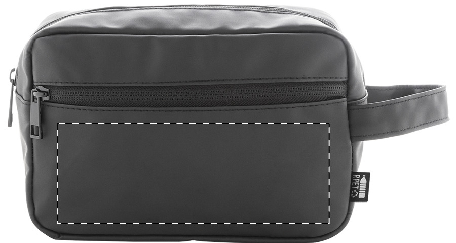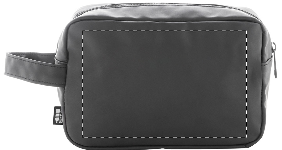 Zachte make-uptas van gerecycled PU-leer met twee compartimenten met ritssluiting en handvat. Met onderscheidend recycled PU label.