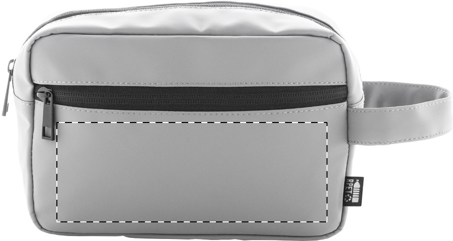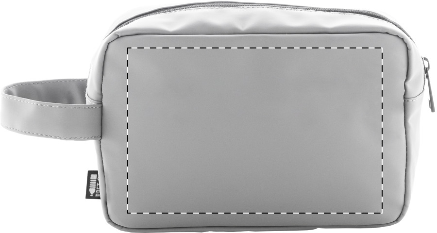 Zachte make-uptas van gerecycled PU-leer met twee compartimenten met ritssluiting en handvat. Met onderscheidend recycled PU label.