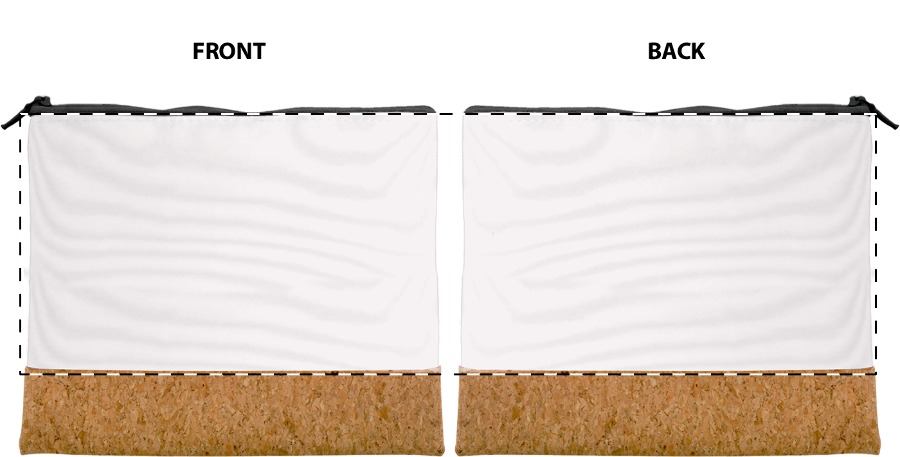 Custom made make-uptas met ritssluiting van polyester en natuurkurk. Met all-over sublimatiedruk. MOQ: 50 stuks.