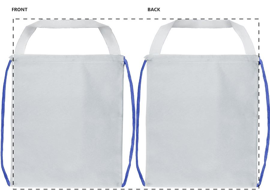 Custom made tas met trekkoordsluiting met gekleurde touwtjes en lange hengsels, 190T polyester. Ook te gebruiken als boodschappentas. Met all-over sublimatiebedukking. MOQ: 25 stuks.