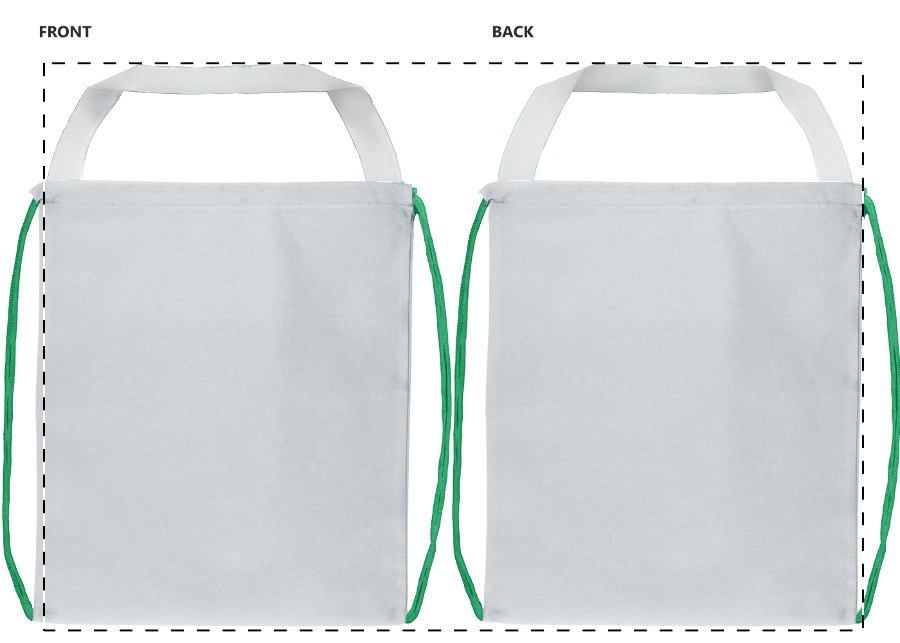 Custom made tas met trekkoordsluiting met gekleurde touwtjes en lange hengsels, 190T polyester. Ook te gebruiken als boodschappentas. Met all-over sublimatiebedukking. MOQ: 25 stuks.