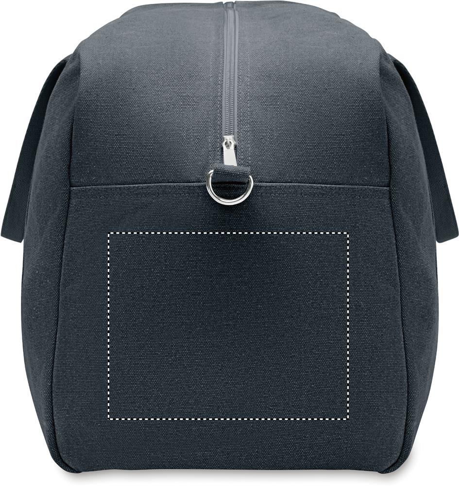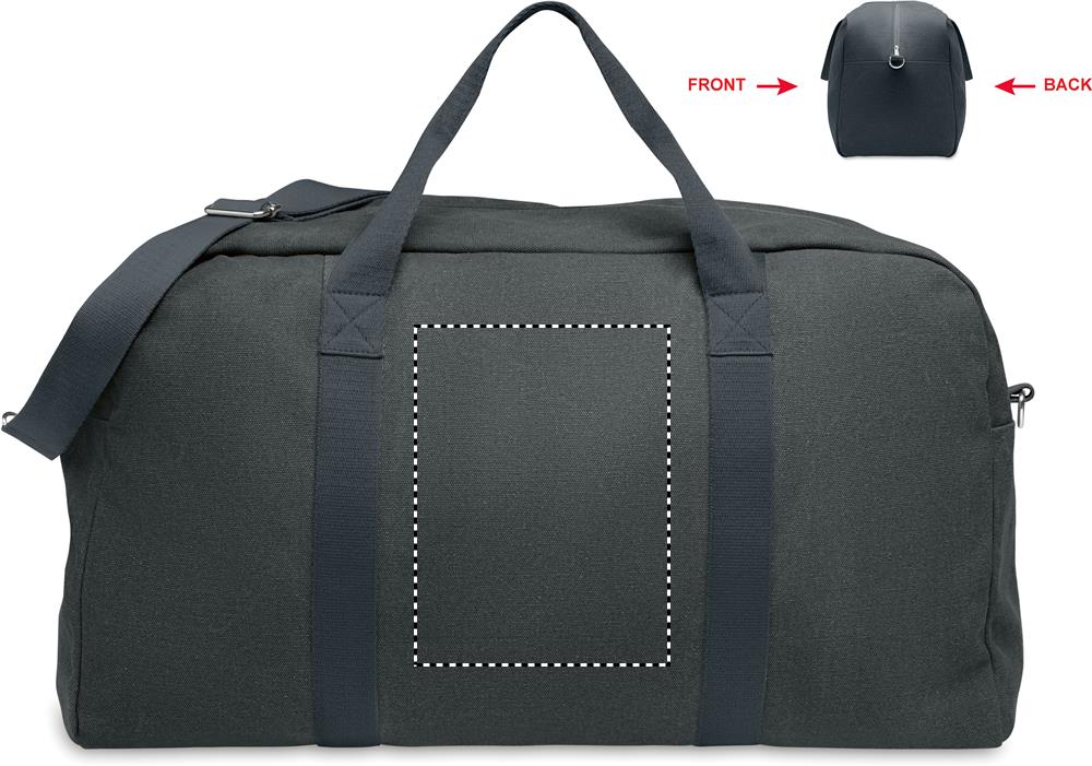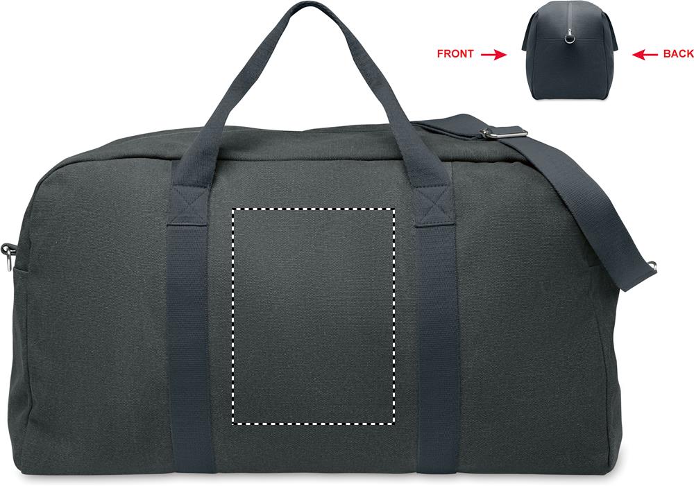 Reis-/ sporttas van gerecyclede 450gr/m² stoffen (60% gerecycled katoen en 40% gerecycled polyester) met verstelbare en afneembare katoenen schouderriem.