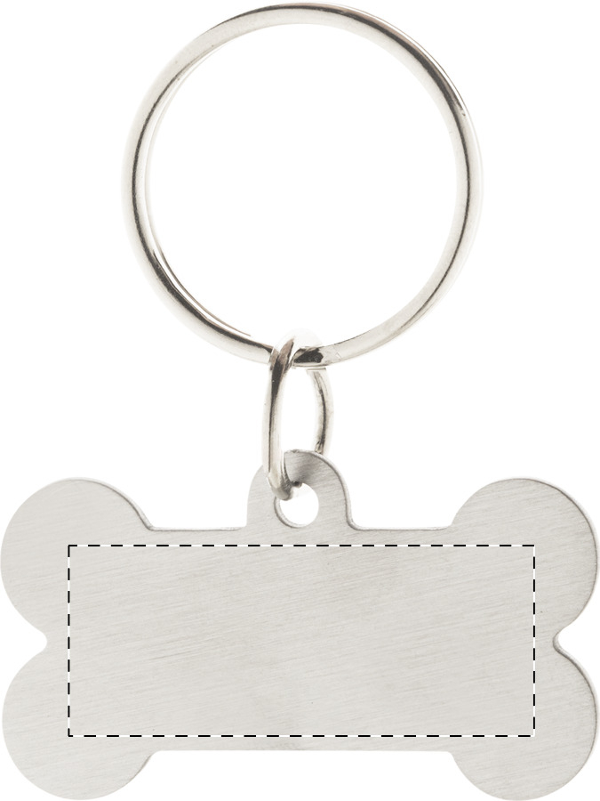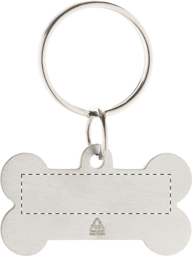 Botvormige, gerecyclede roestvrijstalen hondenpenning met sleutelhanger.