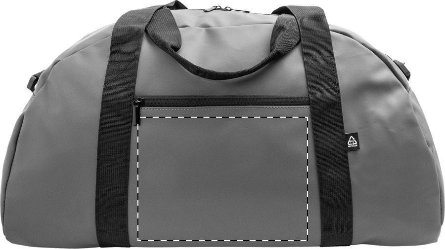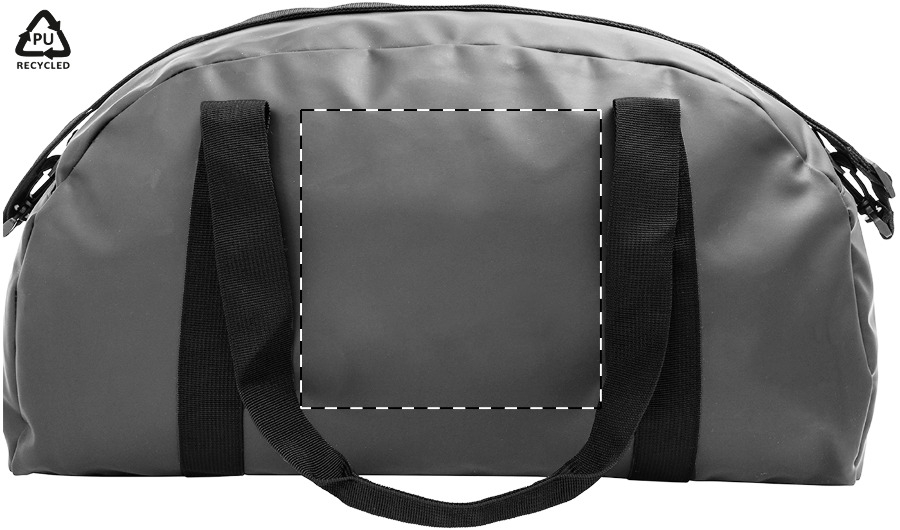 Waterdichte, zachte gerecyclede PU lederen sporttas met rits hoofdvak, rits voorvak, lange handvatten en verstelbare schouderriem. Met onderscheidend gerecycled PU-label.