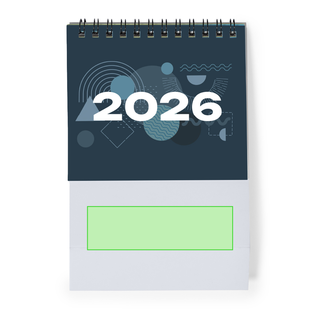 Ringtafel kalender, driehoekig van karton. Ontwerp lopende maand/vorige maand/volgende maand en kalender van heiligen dagen. Groot merkoppervlak aan beide zijden.