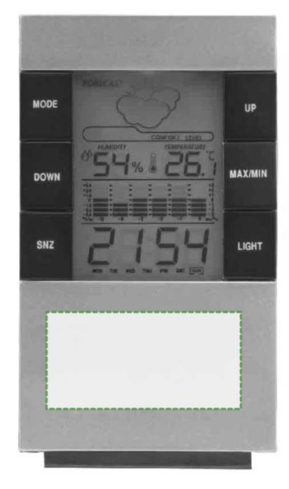Kunststof weerstation met tijd- en datumweergave, thermo- en hygrometer, weersverwachting, alarm en blauwgekleurd display, incl. batterijen. Dit weerstation kan aan de muur gehangen worden.