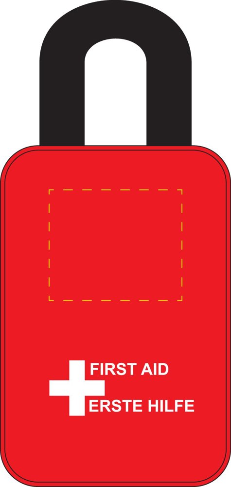 Praktische polyestertas met draaggreep, riemlus, 2 binnenvakken en een rondomrits. Gevuld met kwaliteitsartikelen: hechtpleister, snelverband, 2 pleisterstrips, verbandpakket, 2 kompressen, fixeerzwachtel, kleine schaar, wegwerphandschoenen.